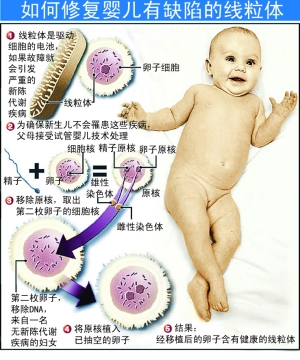 這項研究的重點是卵子細胞中的線粒體。線粒體游離于細胞質(zhì)中,是細胞進行呼吸作用的場所,有細胞“動力工廠”之稱。嬰兒胚胎中的線粒體遺傳自卵子細胞,如果母體線粒體本身有基因缺陷,新生兒就易出現(xiàn)肌肉萎縮、癲癇、中風、糖尿病、失聰、失明、肝功能衰竭和智力發(fā)育遲緩等各類疾病。
