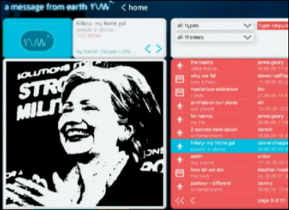 發(fā)送的信息中包含了英國倫敦的標志性建筑“倫敦眼”、“愛丁堡城堡”的照片,希拉里·克林頓及一些知名電視主持人的照片,還包括Bebo網(wǎng)站的網(wǎng)友書寫的關于對生命、理想及地球風景的詩歌文章等。其中一則信息寫道:“我希望我能活著看到兩個世界相互交流的那一天。”