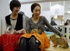 中新網(wǎng)1月6日電 可以讓顧客和兔子親密接觸的“兔兔咖啡館”去年7月在日本名古屋東區(qū)開張,除了帶孩子的父母和女性客人以外,許多下班回家的公司職員也經(jīng)常光顧,生意非常興隆。該店“園長”倉田直基(36歲)說:“兔子有著心靈治療的神奇力量。人們都喜歡和它們接觸,獲得內(nèi)心的平和。”