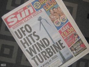 據CNN報道,本月8日 一個不明飛行物襲擊了英國林肯郡的一個小村莊,一個風能發(fā)電機的扇葉被飛行物擊出了20米遠。