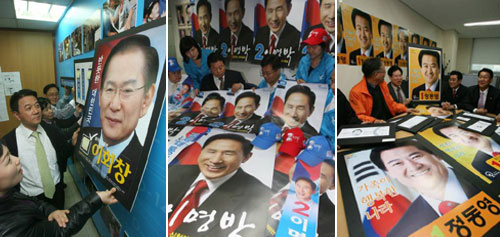 各候選人從選舉正是開幕的27日開始,將巡回全國(guó),進(jìn)行激烈的游說(shuō)戰(zhàn)。大國(guó)家黨候選人李明博,27日零時(shí)訪問了東大門市場(chǎng),與商人約定激活平民經(jīng)濟(jì),以此揭開了正式的選舉運(yùn)動(dòng)。無(wú)派別候選人李會(huì)昌,上午參拜了韓國(guó)國(guó)立賢忠院后,在中區(qū)南大門選舉辦公室旁邊的草地上舉行“出征儀式”。大統(tǒng)一民主新黨候選人鄭東泳,當(dāng)天零時(shí)在全南麗水市廳與市民一起等待2012年麗水世界博覽會(huì)的申報(bào)結(jié)果,以此展開了選舉活動(dòng)。