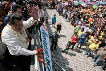 埃斯特拉達原本承諾不再過問政事,但依然堅持攻擊身陷貪污丑聞的阿羅約,要求其立即辭職。他還決定在下次菲律賓大選時加入反對黨陣營,埃斯特拉達13日在接受記者采訪時說,“我將考慮,F(xiàn)在我沒有競選的打算,但是如果人民要求的話,我可以拒絕嗎?”