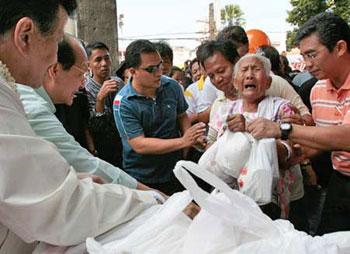 目前,菲律賓政府通過價格補貼的方式向貧苦階層提供平價大米,每個消費者每天可以到國家糧食署的銷售點購買5公斤的大米,每公斤的價格為18.25比索(約合44美分),而市場上流通的商品大米價格為30比索以上,但這些僅僅是杯水車薪。
