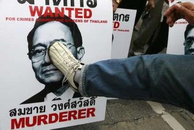 反政府示威者抗議總理頌猜采用強(qiáng)制手段鎮(zhèn)壓民眾。當(dāng)日,示威者封鎖了一條商業(yè)街道,并四處散發(fā)記錄7日警民對峙的碟片及照片,還有人高舉稱警察總長和頌猜為“殺手”的標(biāo)語。