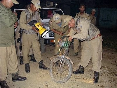 印度軍方正在檢查藏匿炸彈的踏板車殘骸