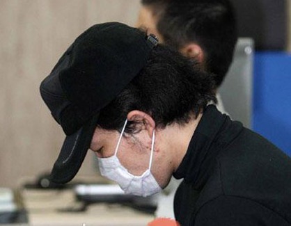 犯罪嫌疑人鄭祥鎮(zhèn)戴著帽子和口罩在首爾江南警察署接受調(diào)查。