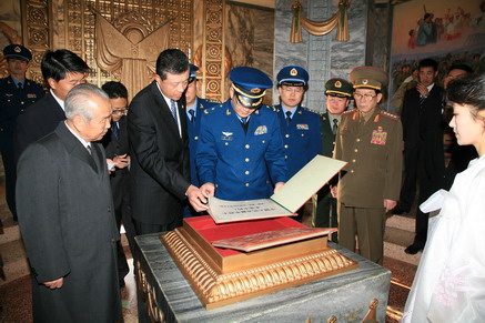 中朝兩國(guó)人員在友誼塔前向烈士們默哀致意,并在儀式后參觀了友誼塔。崔永林秘書長(zhǎng)、劉曉明大使和宋琨團(tuán)長(zhǎng)等翻閱了保存在友誼塔內(nèi)的志愿軍烈士名冊(cè)。崔永林說(shuō),58年前,中國(guó)人民志愿軍入朝作戰(zhàn),與朝鮮人民和軍隊(duì)并肩戰(zhàn)斗,一同打敗了侵略者。朝鮮黨、政府和人民十分珍視兩國(guó)人民和兩國(guó)軍隊(duì)用鮮血凝成的深厚友誼,對(duì)中國(guó)人民志愿軍的豐功偉績(jī)永志不忘。劉大使感謝朝方為中國(guó)人民志愿軍入朝參戰(zhàn)58周年舉行紀(jì)念活動(dòng),并表示中朝兩國(guó)人民在保衛(wèi)家園、維護(hù)和平的共同事業(yè)中結(jié)下了深厚的友誼。在兩國(guó)最高領(lǐng)導(dǎo)人的親切關(guān)心下,兩國(guó)人民繼承和發(fā)揚(yáng)這一友好傳統(tǒng),使兩國(guó)友好合作關(guān)系不斷得到深化和發(fā)展。