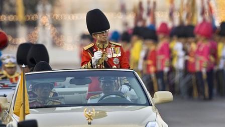 當(dāng)天下午,泰國(guó)首都曼谷的五世王廣場(chǎng)一帶張燈結(jié)彩,每年一度的慶祝國(guó)王生日閱兵典禮在這里隆重舉行。接受檢閱的泰國(guó)各兵種官兵在武裝部隊(duì)總司令的帶領(lǐng)下向國(guó)王宣誓效忠。國(guó)王隨后發(fā)表了簡(jiǎn)單講話,希望軍隊(duì)保持團(tuán)結(jié),為維護(hù)國(guó)家和人民利益發(fā)揮積極作用。