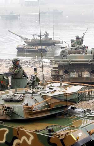 中新網(wǎng)2月5日電 據(jù)韓聯(lián)社報(bào)道,5日上午,韓美在京畿道漣川郡進(jìn)行了聯(lián)合戰(zhàn)車渡河演習(xí)。