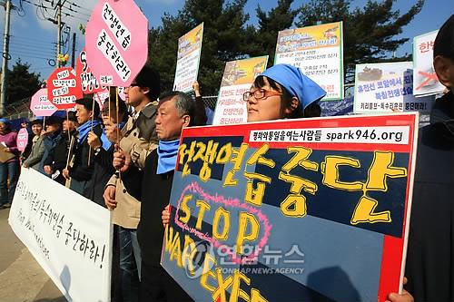 在光州,30多名6.15共同委員會(huì)光州全南本部成員,在全南道舊政府大樓前舉行記者會(huì)表示:“目前韓半島處于高度緊張狀態(tài),應(yīng)停止大規(guī)模的戰(zhàn)爭(zhēng)演習(xí)。”