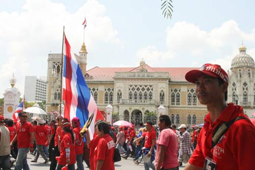 紅衫軍領(lǐng)袖也是為泰黨議員賈都朋說,這次示威至少持續(xù)一個月,若群眾愿意,他們也能夠持續(xù)示威一整年。