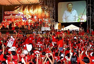 據(jù)悉,泰國成千上萬名反政府示威者上周阻止總理阿披實進入總理府。泰國前流亡總理他信28日通過視頻講話指控2006年策劃政變的人物是樞密院主席普瑞姆與前總理素拉育。普瑞姆與泰王關系密切,同時也是政變后臨時總理素拉育的前長官,過去曾被揣測是軍事政變的幕后主導人,這次他信直接公開指控,成為泰國全國焦點。