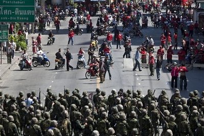 泰國總理阿披實(shí)13日夜對媒體稱,在同反政府示威者進(jìn)行一天的爭斗后,軍隊(duì)已經(jīng)控制住首都曼谷的局勢。阿披實(shí)說,人們有權(quán)舉行和平示威,但不是暴亂。他說,“我們相信,我們已經(jīng)控制住局勢!