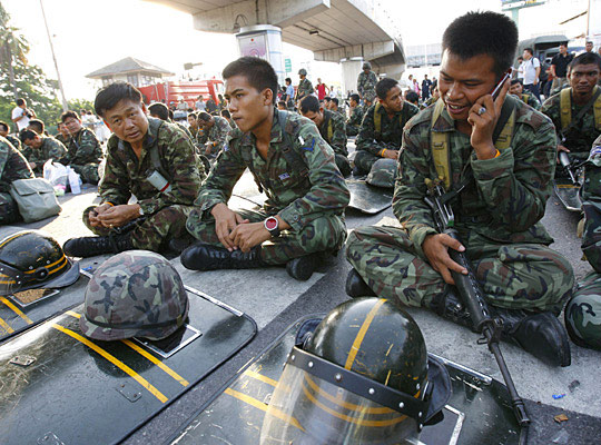 當(dāng)?shù)貢r(shí)間中午12時(shí)半,泰國(guó)警察總局官員和“紅衫軍”主要領(lǐng)導(dǎo)人在總理府前進(jìn)行談判,隨后“紅衫軍”領(lǐng)導(dǎo)人通過(guò)擴(kuò)音喇叭通知集會(huì)在總理府附近的示威者解散集會(huì)回家。示威者今天將通過(guò)曼谷四個(gè)車站分乘大巴返回北部、東北部等地。
