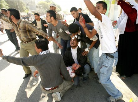 哈馬斯官員說(shuō),保安部隊(duì)向那些對(duì)著保安據(jù)點(diǎn)扔石頭的示威者開(kāi)了槍。