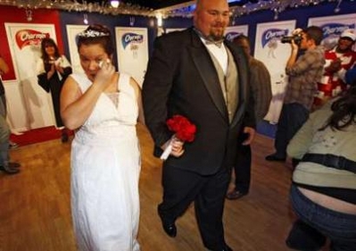 中新網(wǎng)紐約12月20日電 19日,來自美國肯塔基州列克星頓的新娘珍妮弗•坎農(nóng)和新郎多伊•尼科爾斯在紐約泰晤士廣場的豪華公廁舉行了一場別開生面的婚禮。