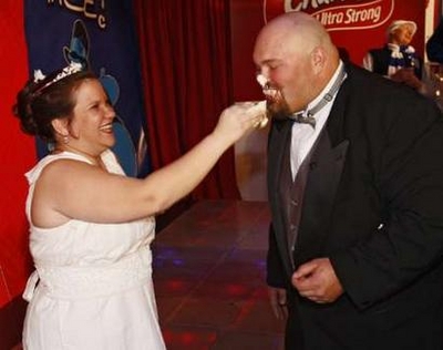 新娘穿的潔白婚紗是用數(shù)卷廁紙精制而成,由本年度廁紙結(jié)婚禮服比賽冠軍哈納•金設(shè)計(jì)。廉宜時髦結(jié)婚公司對本次婚禮提供了贊助。