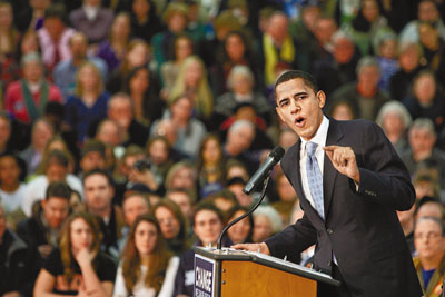 中新網(wǎng)1月6日電 美國(guó)艾奧瓦州首場(chǎng)黨派會(huì)議結(jié)束后,民主共和兩黨的總統(tǒng)參選人馬不停蹄趕抵東北部的新罕布什爾州,為下周二(8日)舉行的初選拉票。據(jù)香港《文匯報(bào)》報(bào)道,美國(guó)民主黨伊利諾伊州黑人參議員奧巴馬乘著先拔頭籌的氣勢(shì),與首戰(zhàn)意外落到第3位的希拉里在電視辯論中正面對(duì)決,政治期貨市場(chǎng)亦看好他能再下一城。奧巴馬還大打中國(guó)牌,承諾不會(huì)妖魔化中國(guó),爭(zhēng)取華人社區(qū)支持。