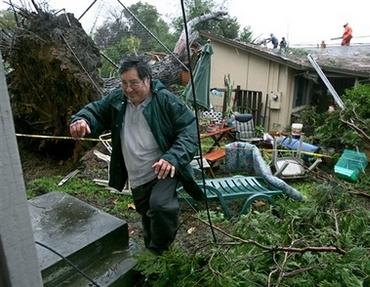 據(jù)加州州長緊急服務(wù)辦公室發(fā)言人說,在洛杉磯的奇諾市,一名婦女企圖逃離拋錨的汽車時(shí),被洪水沖走;一名在薩克拉門托尤巴市的工人則被倒塌的大樹壓死。