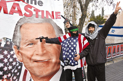 中新網(wǎng)1月10日電 綜合報道,美國總統(tǒng)布什9日率團抵達(dá)以色列,在傍晚與以色列總理奧爾默特會面后,布什表示,以色列必須移除非法屯墾區(qū)。在布什到訪當(dāng)天,耶路撒冷爆發(fā)了大規(guī)模反布什示威。
