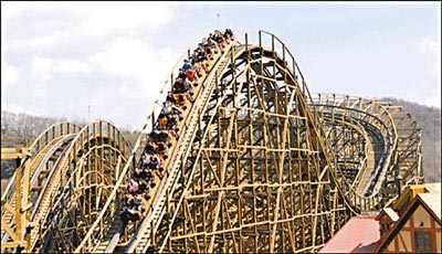 韓過山車40米高空突然停止運行 困客17分鐘(圖)