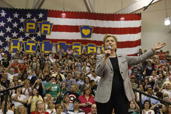 賓州共有158張黨代表票,選前的民調(diào)顯示,希拉里以48%支持率,領(lǐng)先奧巴馬約5個百分點。賓州的藍(lán)領(lǐng)階層較多,希拉里和奧巴馬前日都刻意親近工人階級,希拉里去酒吧喝啤酒,奧巴馬則登上一列古老列車,到訪貧窮小鎮(zhèn)。