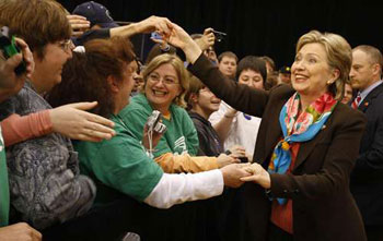 據(jù)香港《大公報》報道,位于波士頓的薩福克大學(xué)二十一日所公布的調(diào)查結(jié)果顯示,經(jīng)過數(shù)星期的全力拉票,前第一夫人希拉里在有可能去投票的選民當(dāng)中,取得百分之五十二支持,高于爭取成為美國首位黑人總統(tǒng)的伊利諾伊州參議員奧巴馬所得的百分之四十二。