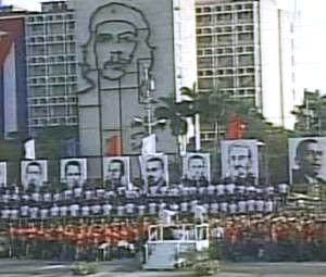 革命廣場(chǎng)上樹立起馬克思、恩格斯和列寧的肖像,還有當(dāng)年古巴游擊隊(duì)領(lǐng)導(dǎo)人切·格瓦拉的大幅圖像。勞爾·卡斯特羅于今年2月當(dāng)選古巴國(guó)務(wù)委員會(huì)主席,正式接替身體日益虛弱的菲德爾·卡斯特羅的職務(wù),但黨的第一書記仍由菲德爾·卡斯特羅擔(dān)任。