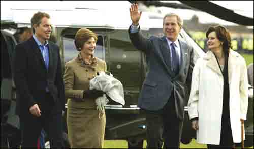 切麗披露稱,在她和克林頓夫婦建立牢固的關(guān)系后,當(dāng)她聽(tīng)到布什贏得了美國(guó)總統(tǒng)選舉后,她感到難過(guò)。不過(guò),當(dāng)她和布萊爾對(duì)美國(guó)進(jìn)行國(guó)事訪問(wèn)期間在戴維營(yíng)第一次與布什夫婦見(jiàn)面時(shí),她和布萊爾與布什夫婦相處得很好,他們當(dāng)天晚上一起看了一部DVD。切麗對(duì)媒體披露:“當(dāng)我們與布什夫婦度過(guò)第一個(gè)晚上時(shí),我們很早就吃了晚飯。吃完晚飯后,布什說(shuō)‘我們?yōu)槭裁床豢匆徊侩娪澳?他解釋說(shuō),他有所有新片的DVD碟片。我們那晚看了由羅伯特-德尼羅主演的《拜見(jiàn)岳父岳母》。布什其實(shí)是一個(gè)非常好玩、有吸引力的男人,他有一種很奇怪的幽默感。他說(shuō),媒體對(duì)他印象不佳的原因是‘我說(shuō)得州話!?肆诸D也來(lái)自南方,雖然他可能會(huì)說(shuō)南方話,但他的思維并不像南方人!