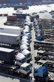 本周早些時(shí)候,工會(huì)領(lǐng)導(dǎo)人員與政府之間進(jìn)行了幾次磋商,但是始終沒(méi)有就司機(jī)們的要求達(dá)成共識(shí)。雖然罷工只進(jìn)行了幾天,但已經(jīng)嚴(yán)重削弱韓國(guó)港口的吞吐量,對(duì)出口商造成巨大損失。 2003年5月,大約6000名卡車(chē)司機(jī)舉行了為期兩周的罷工行動(dòng),總共對(duì)出口商造成5億美元損失。