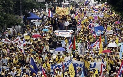 此次反政府活動(dòng)是由泰國人民民主聯(lián)盟(民盟)組織的。示威者和警察的對(duì)峙使得總理府周邊區(qū)域陷入混亂,道路的交通完全中斷,學(xué)校停課,總理府各部門不得不放假一天。