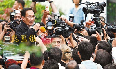 中新網(wǎng)7月1日電 馬來西亞前副總理安瓦爾再度卷入雞奸案后,前天藏身吉隆坡的土耳其大使館,他獲政府保證人身安全后,昨晚自愿離開。