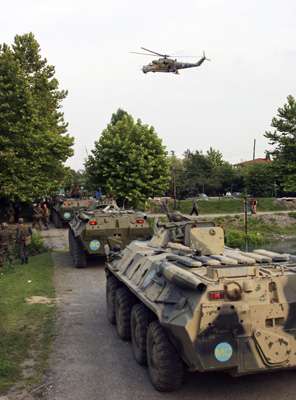 俄軍裝甲部隊(duì)十日在武裝直升機(jī)的護(hù)送下進(jìn)入阿布哈茲。