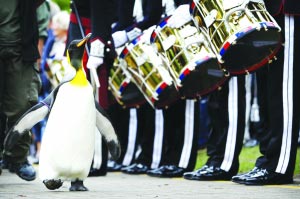 15日,企鵝尼爾斯在愛丁堡動物園檢閱挪威皇家衛(wèi)隊(duì)。