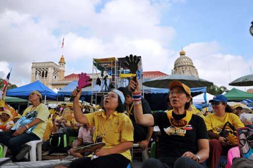 泰國反政府示威者三日在曼谷總理府示威。