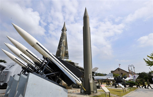 10月8日,韓國(guó)軍人在朝鮮戰(zhàn)爭(zhēng)紀(jì)念館展示的朝鮮導(dǎo)彈模型前走過(guò)。韓國(guó)媒體報(bào)道稱朝鮮7日發(fā)射了短程導(dǎo)彈。
