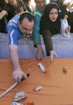 中新網(wǎng)10月19日電 據(jù)臺(tái)灣中廣新聞報(bào)道,伊朗做出刷新世界紀(jì)錄的特大號(hào)三明治,可是還來不及完成認(rèn)證,就被圍觀的群眾搶食一空。