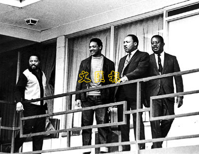 馬丁路德金(右二)1968年在孟菲斯這間旅館的露臺被槍殺。