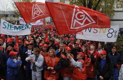 中新網(wǎng)11月4日電 綜合報(bào)道,德國(guó)數(shù)以十萬(wàn)計(jì)的有色金屬和電子工人3日舉行罷工,要求大幅度提高工資。德國(guó)工會(huì)IG Metall 說,工人3日在工作時(shí)參加了罷工。