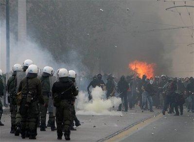 希臘警察射殺少年事件引發(fā)的騷亂在時斷時續(xù)了一段時間后,20號再次出現(xiàn)惡化的局面,當天數(shù)百名示威者在雅典市中心和警方爆發(fā)沖突,雅典街頭火光沖天。