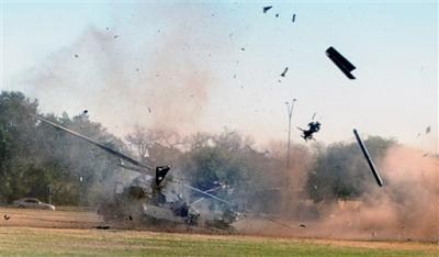 據(jù)目擊者說,他們看到有5架黑鷹直升機起飛和降落,其中1架升空后不久就失去控制,之后開始打轉(zhuǎn),隨后突然墜落地面。