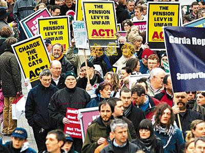 中新網(wǎng)2月23日電 受環(huán)球經(jīng)濟衰退影響,再有歐洲國家爆發(fā)大規(guī)模示威。據(jù)香港《文匯報》報道,12萬愛爾蘭人21日走上首都都柏林街頭,抗議政府拯救經(jīng)濟不力。參與示威的包括教師、公務員甚至警察,由于人數(shù)太多,主辦單位要提早出發(fā),人龍一度填滿長達兩公里的游行路線。