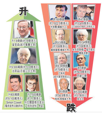 富豪門坎已大為降低,去年上榜的身家最少要有8000萬(wàn)英鎊,今年降至5500萬(wàn)英鎊,是2003年起首次要降低門坎,盡管如此,部分富豪仍難免跌出榜外。