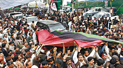 20萬名支持者高舉國旗和叫喊口號,悼念布托。