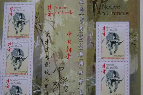 送走令人感慨的鼠年,中國(guó)的牛年春節(jié)將至。法國(guó)郵政局于1月10日在巴黎郵政沙龍舉行了中國(guó)牛年生肖郵票發(fā)行儀式。目的在于與廣大旅法華人華僑共同分享中國(guó)傳統(tǒng)的春節(jié)歡樂(lè)。