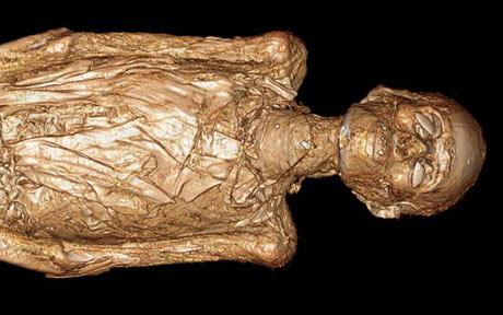 據(jù)英國媒體報(bào)道,美國芝加哥大學(xué)科學(xué)家日前利用X光掃描設(shè)備掃描的這具木乃伊被認(rèn)為是公元前800年,埃及底比斯神廟祭司時(shí)一名唱歌婦女的尸體?脊艑W(xué)家從安放該木乃伊的棺材上的雕刻文字認(rèn)定該木乃伊名叫梅熱薩姆(Meresamun)。從掃描的圖像上可看到當(dāng)時(shí)包裹尸體時(shí)使用的制作精良的裝飾品。