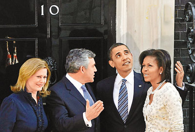 米歇爾陪同丈夫到唐寧街做的第一件事,便是與英國首相伉儷共進(jìn)早餐。