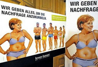 據(jù)法新社報(bào)道,德國一家內(nèi)衣公司5月1日在柏林著名商業(yè)街庫達(dá)姆街推出了一個1000平方英尺的巨幅電子廣告牌,廣告牌上是德國政治家著內(nèi)衣的形象,其中包括德國總理默克爾,她身穿一套紫色胸罩和運(yùn)動短褲。廣告牌上的文字寫著:“我們盡全力增加需求!