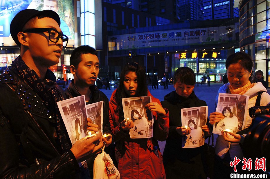 沈陽市民街頭悼念美國爆炸案遇難中國留學生
