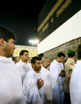 內賈德總統(tǒng)與伊朗外長穆塔基,伊朗議會副議長阿布塔里比和總統(tǒng)高級顧問薩姆哈希米共同參加樂此次朝覲儀式。